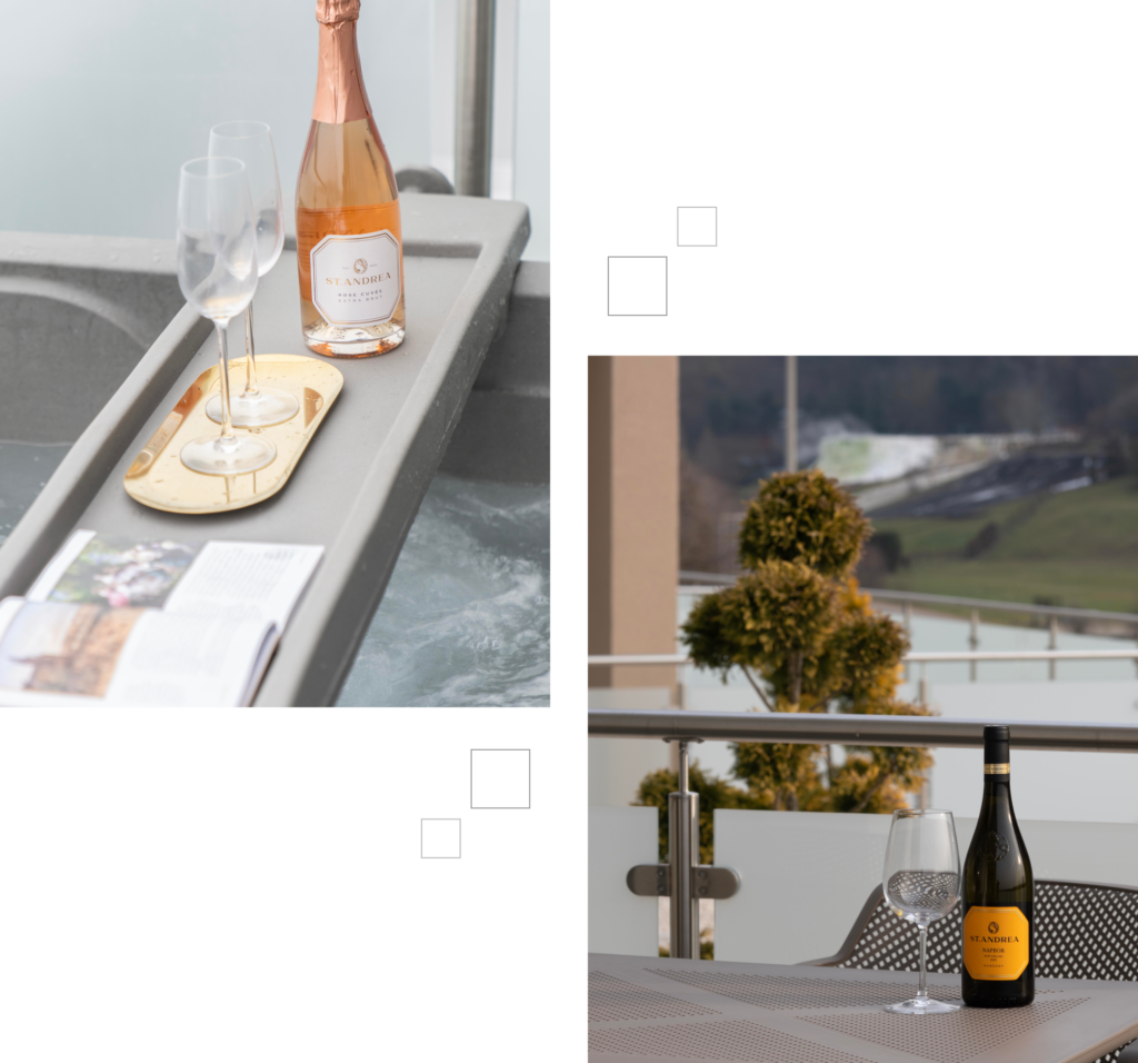 A legszebb pillanatok tökéletes kiegészítője a pezsgő. Koronázza meg pihenését a St. Andrea magas minőségű pezsgőinek egyikével, mi pedig az érkezésük napján a választott apartman egységbe készítjük azt.
