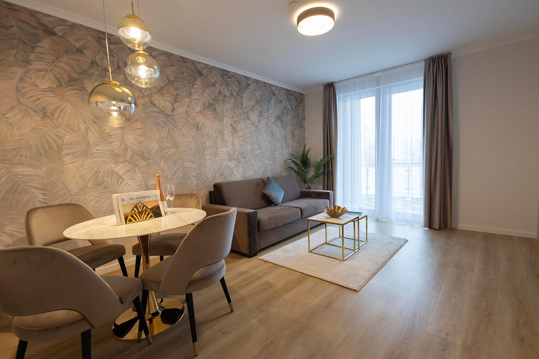 A legszebb pillanatok tökéletes kiegészítője a pezsgő. Koronázza meg pihenését a St. Andrea magas minőségű pezsgőinek egyikével, mi pedig az érkezésük napján a választott apartman egységbe készítjük azt.