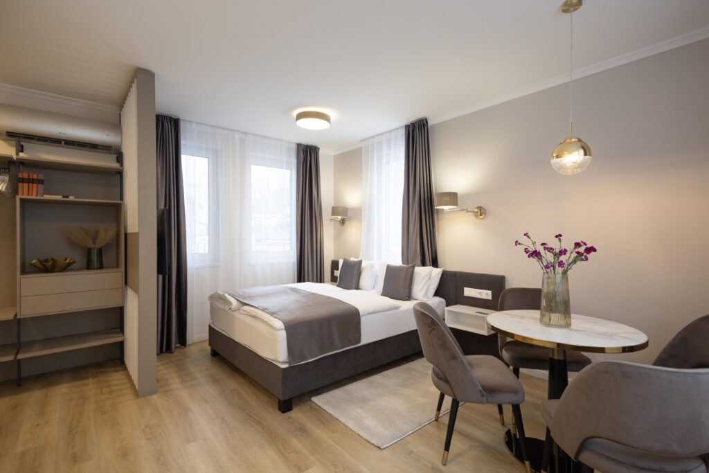 The Salt Hill philosophy is "Unique environment, hotel quality". In our apartment complex, from the Standard to the Pent House room type, the accommodation units have been designed to meet the needs and expectations of our guests. Our spacious accommodation units are the result of a unique design, so there's a subtle minimalist elegance in every detail.